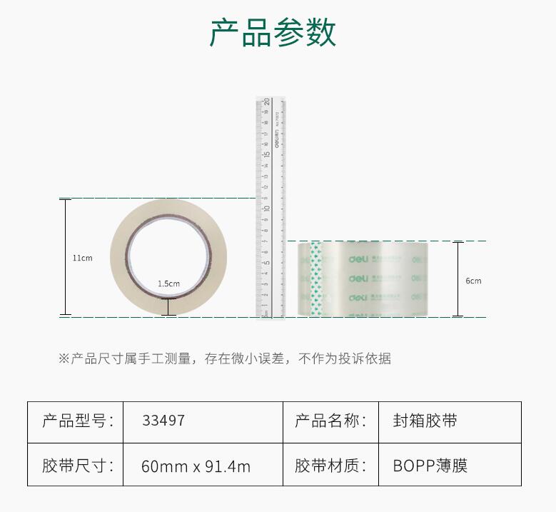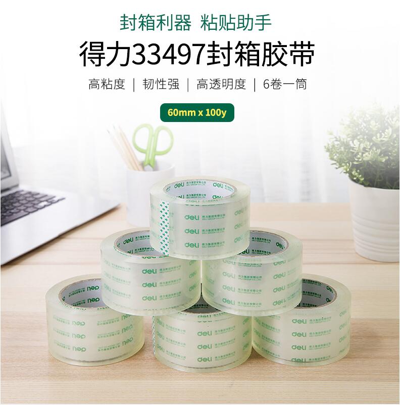 得力33497高透明膠帶 1筒6卷 封箱大號4.8/6cm寬膠帶大卷快遞可定制打包批發(fā)膠布封口固定高粘度不易斷6卷裝封箱膠帶